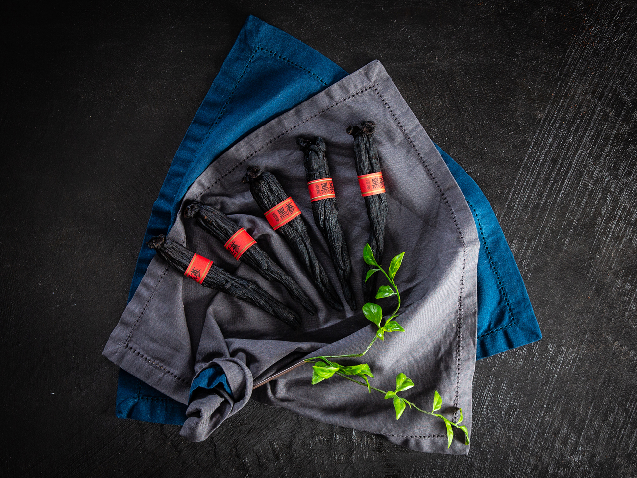 As ginseng is continually steamed and dried, its red color gradually turns to black and it becomes black ginseng.