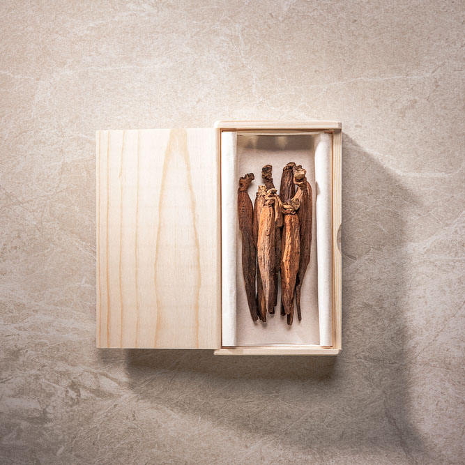 Because the product contains large amounts of the good components of red ginseng which has been aged for 6 months to 1 year, we harvest and process each year in the fall when the ginseng is at its sturdiest and best, and use aged red ginseng for our products.