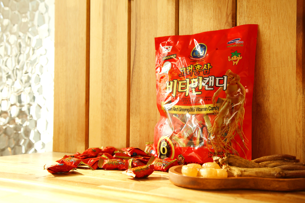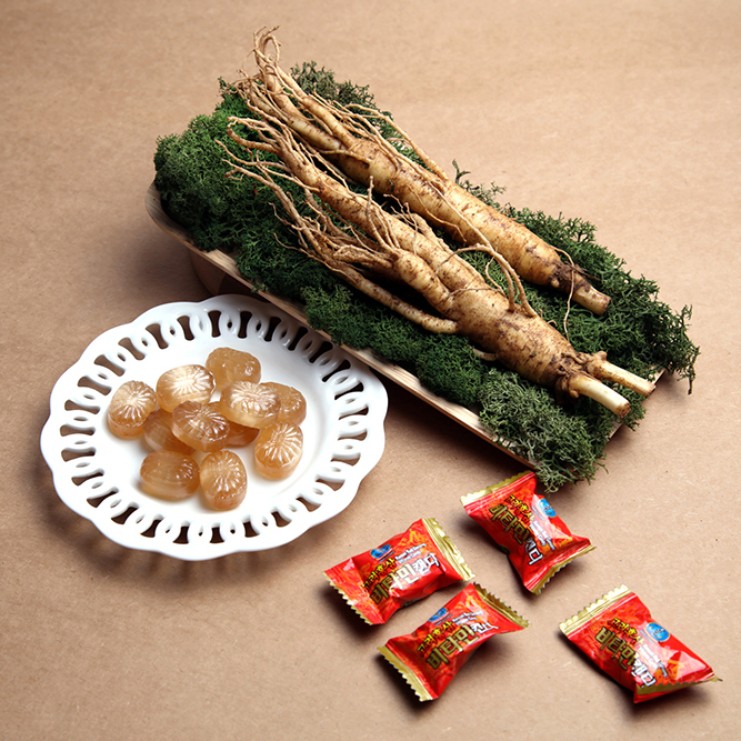 A red ginseng candy. It is made by taking Korean red ginseng, a specialty product of Korea, and putting it through a process of vacuum concentration at low temperatures to create a concentrate which is the main ingredient.