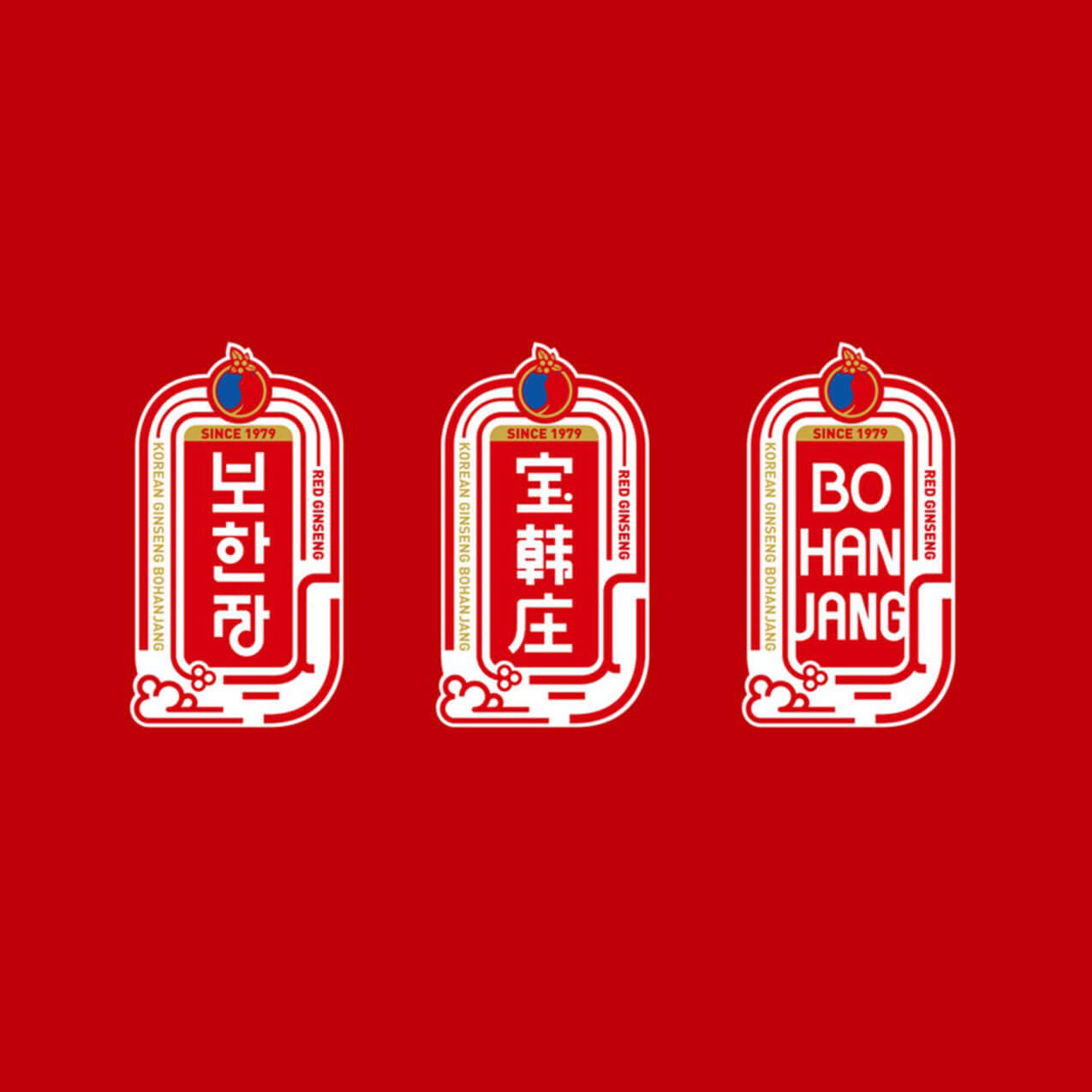 Showing the taegeuk symbol together with ginseng represents Bohanjang’s ambition to be the best and gain customers’ trust, and the stamp emblem and wordmark with a simplified ginseng motif using bold lines express our sturdy, honest corporate image.