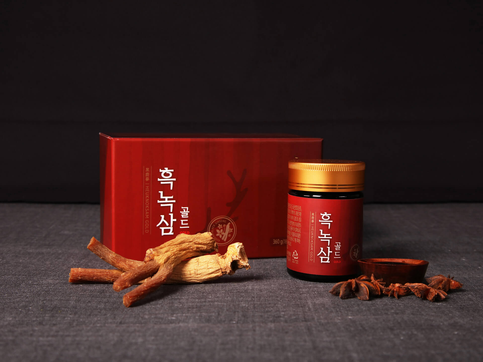 When ginseng is harvested it is still fresh, and after 1 to 2 rounds of steam processing it is referred to as “red ginseng”. Black ginseng is made through 9 rounds of steaming and drying to produce a superior medicinal ingredient. During this process it takes on a black color, which is where it gets its name