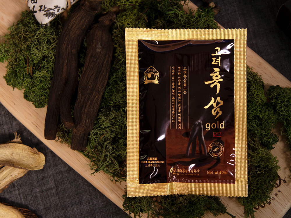 高麗黒参ゴールド1袋をお飲みになると、気力回復と免疫力増進に効果があります。