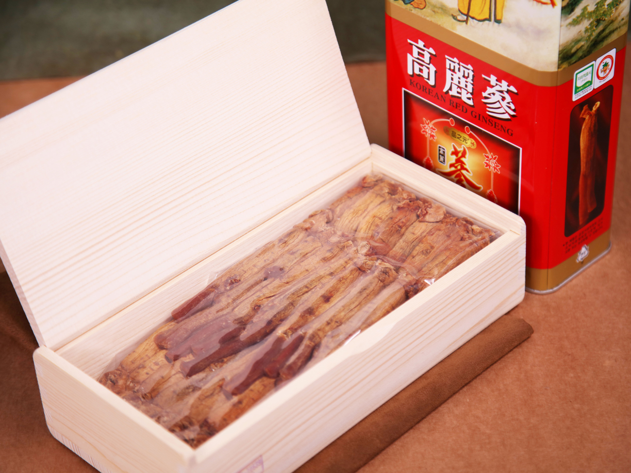 水参を長期保存する目的で蒸して乾燥させて作った紅参を、原形のまま蒸熟・圧縮加工して作った淡赤黄色の製品です。