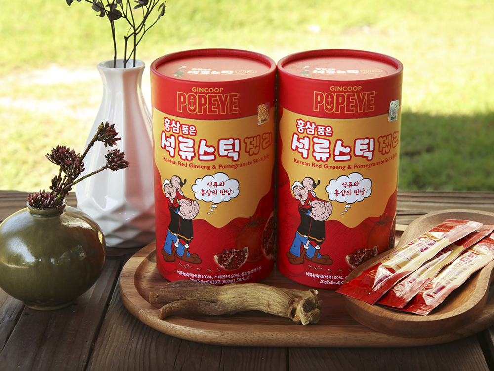 국내산 100% 홍삼농축액 함유되었습니다. 항상성 기능이 우수한 홍삼을 품은 석류스틱 젤리는 겉모습뿐만 아니라 속모습도 미인으로 만들어 줍니다.